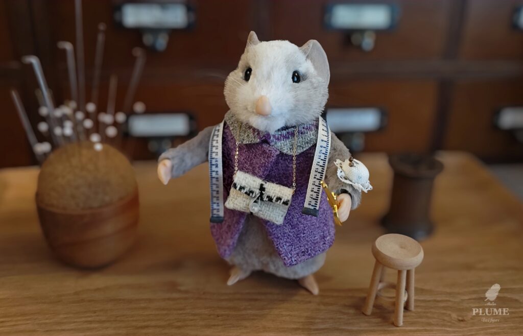 ↓こちらが(完成した)助手のお針子(主任)さんです。多分ハムスター(履歴書のそう書いてありました)お名前は「マダム・マドレーヌ」フランスの有名なアトリエで腕を鳴らしたベテランです!頼もしい~♡